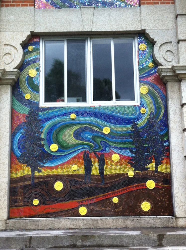 After months of discussing, planning, designing, critiquing, practicing, assembling and installing, the Art 20/30 class at PACI School finished the outdoor mosaic mural. Using over 10,000 pieces of glass tile, the mural was graciously sponsored by the Arts Board of Saskatchewan and created with assistance by artist Twyla Exner.